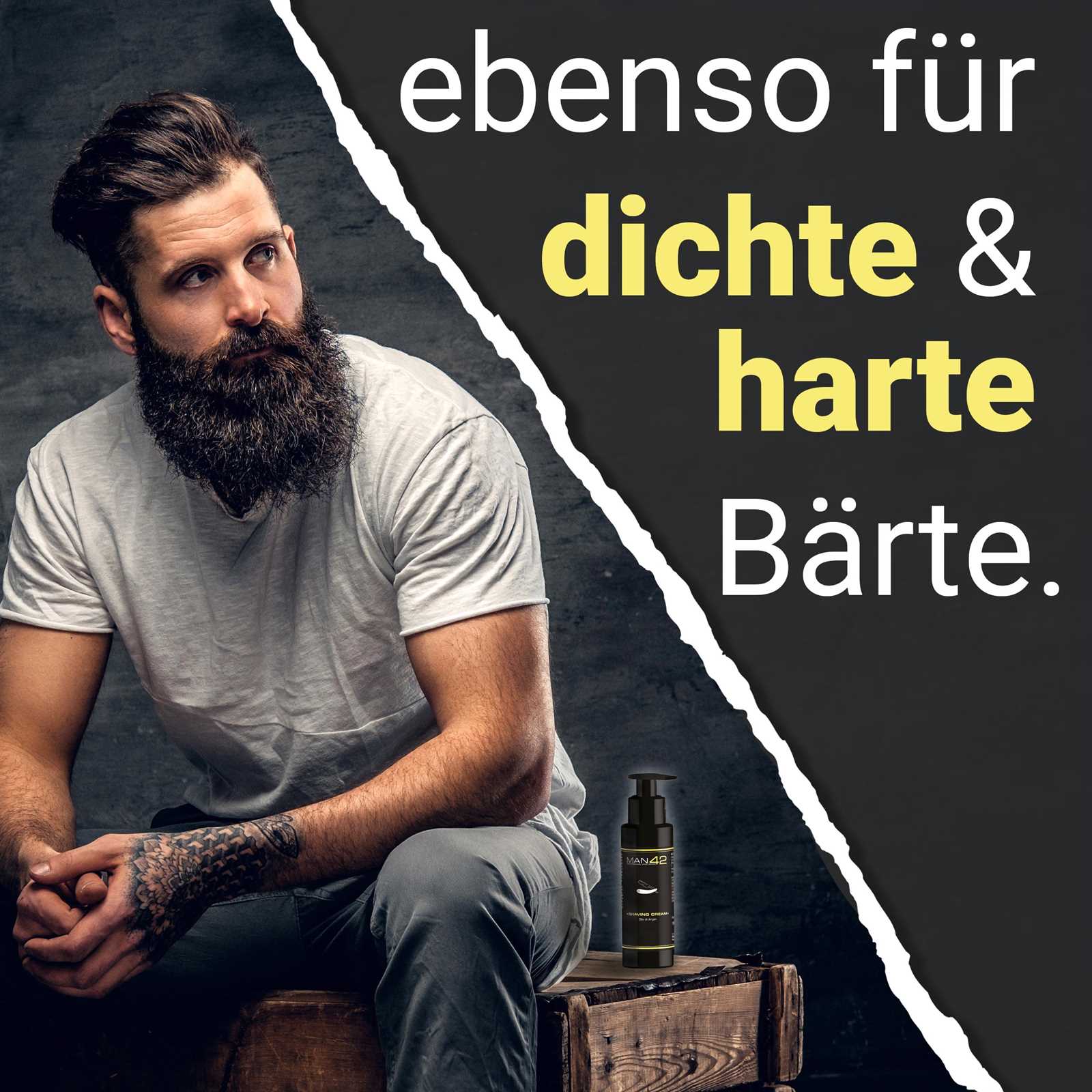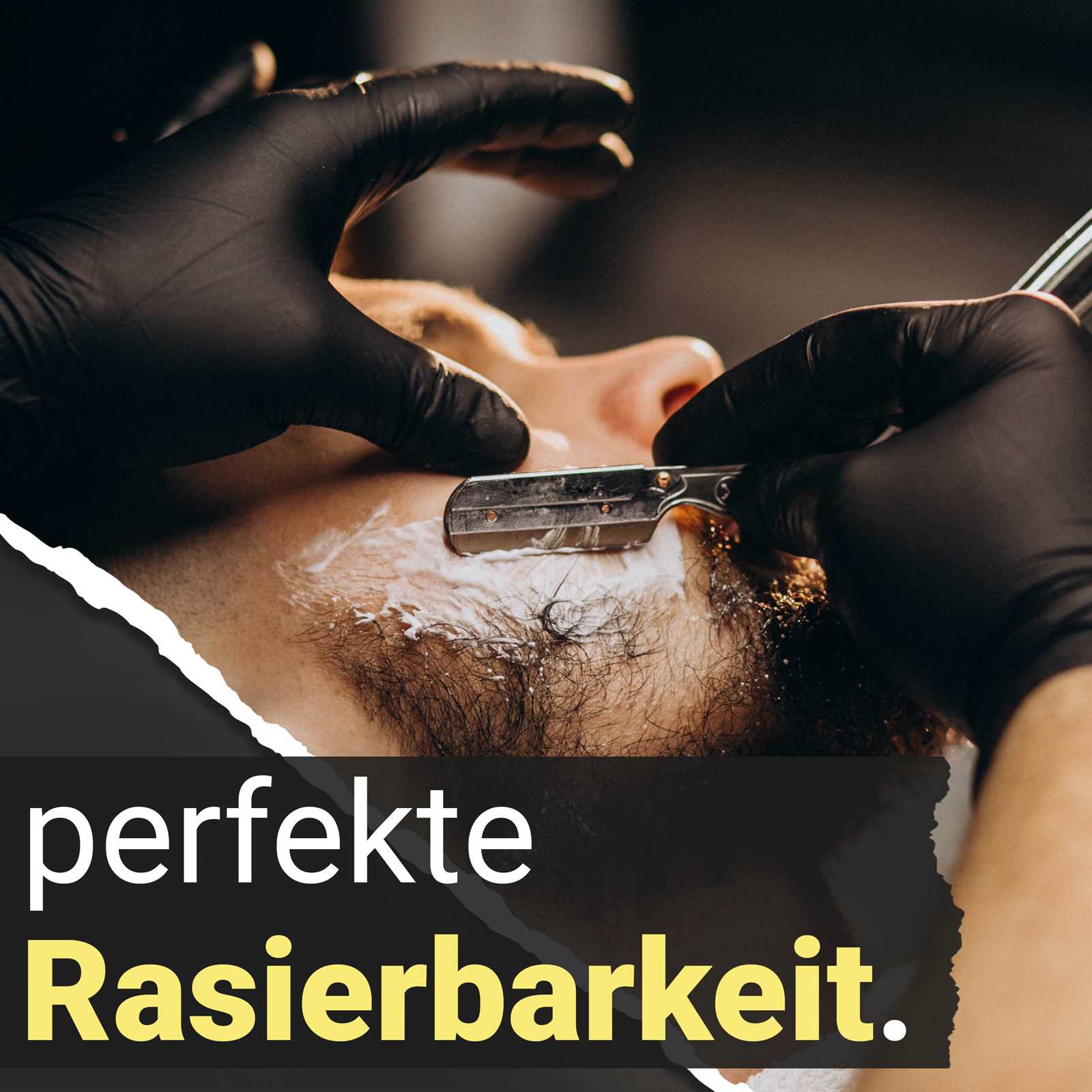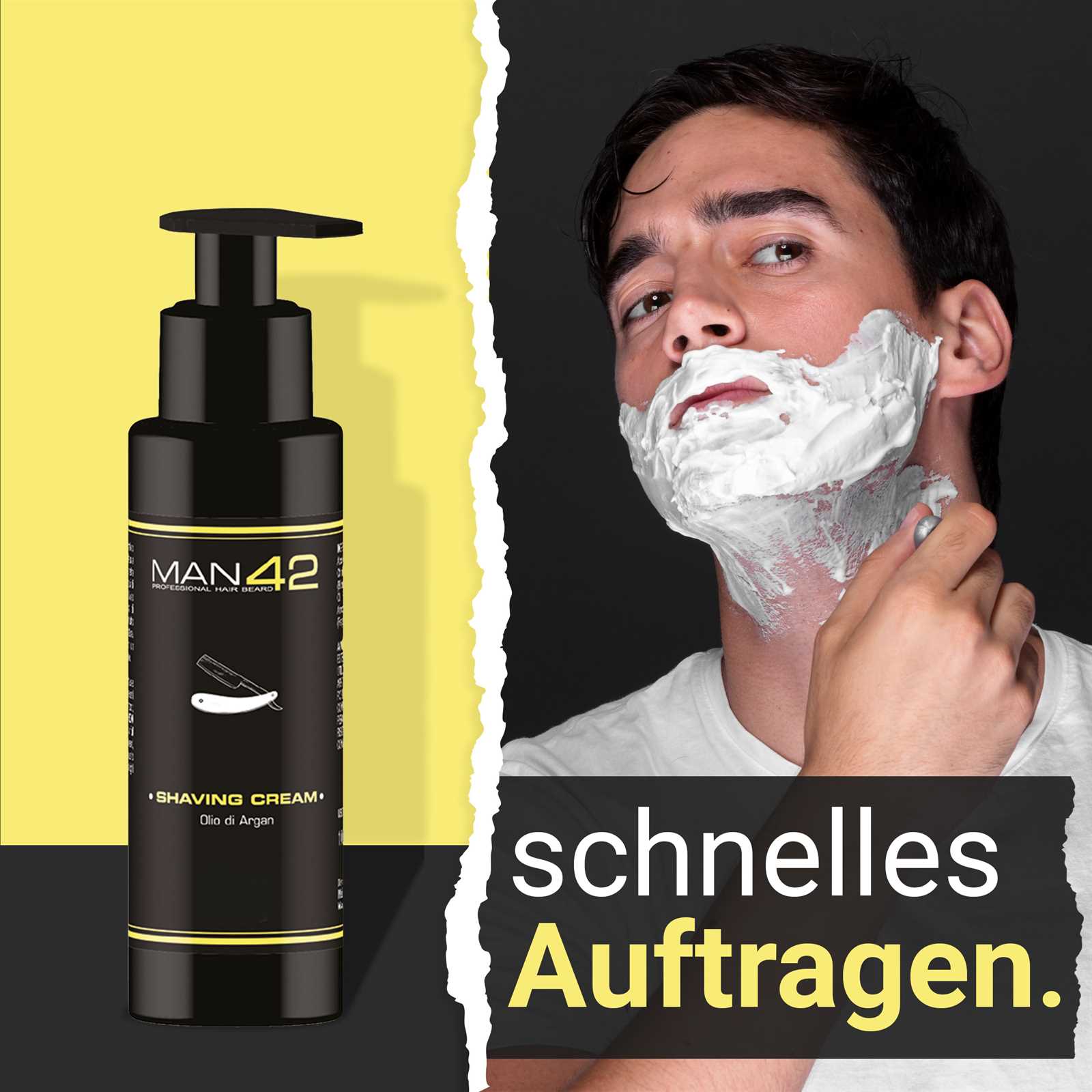 Anwendung: Tragen Sie auf einem sauberen Gesicht eine dicke Schicht Rasiercreme auf den Bart auf, besonders im Bereich des Schnurrbartes.