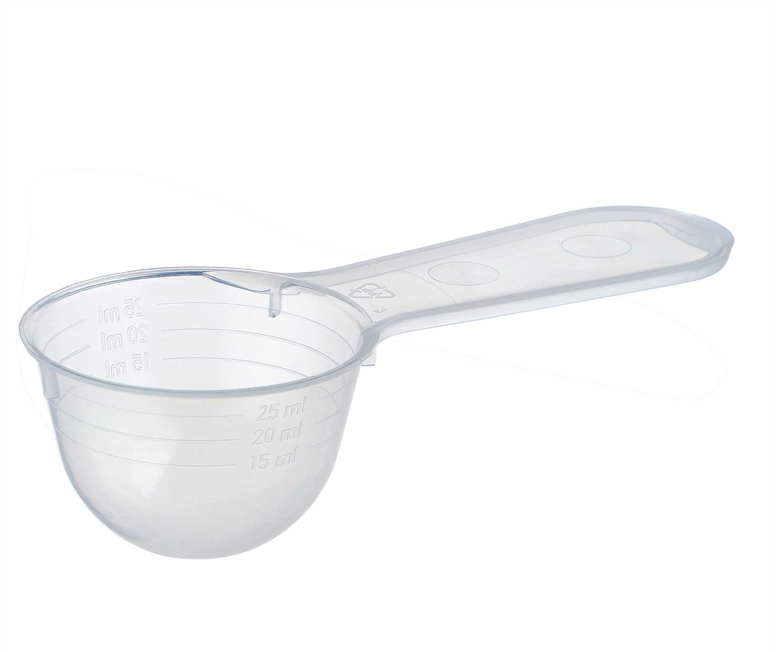 - Feste Skala im Löffel: 5 ml, 20ml, 25ml