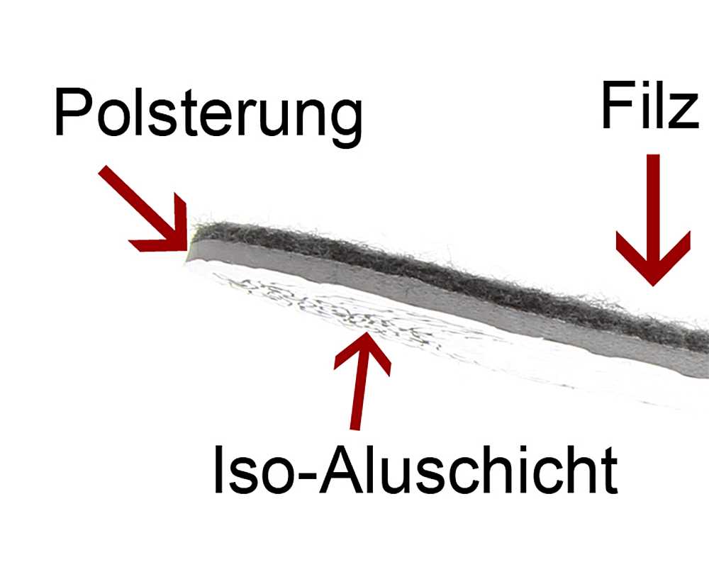 - kuschelige Wärme durch Wollvlies - Filz - Isoschicht - Alu