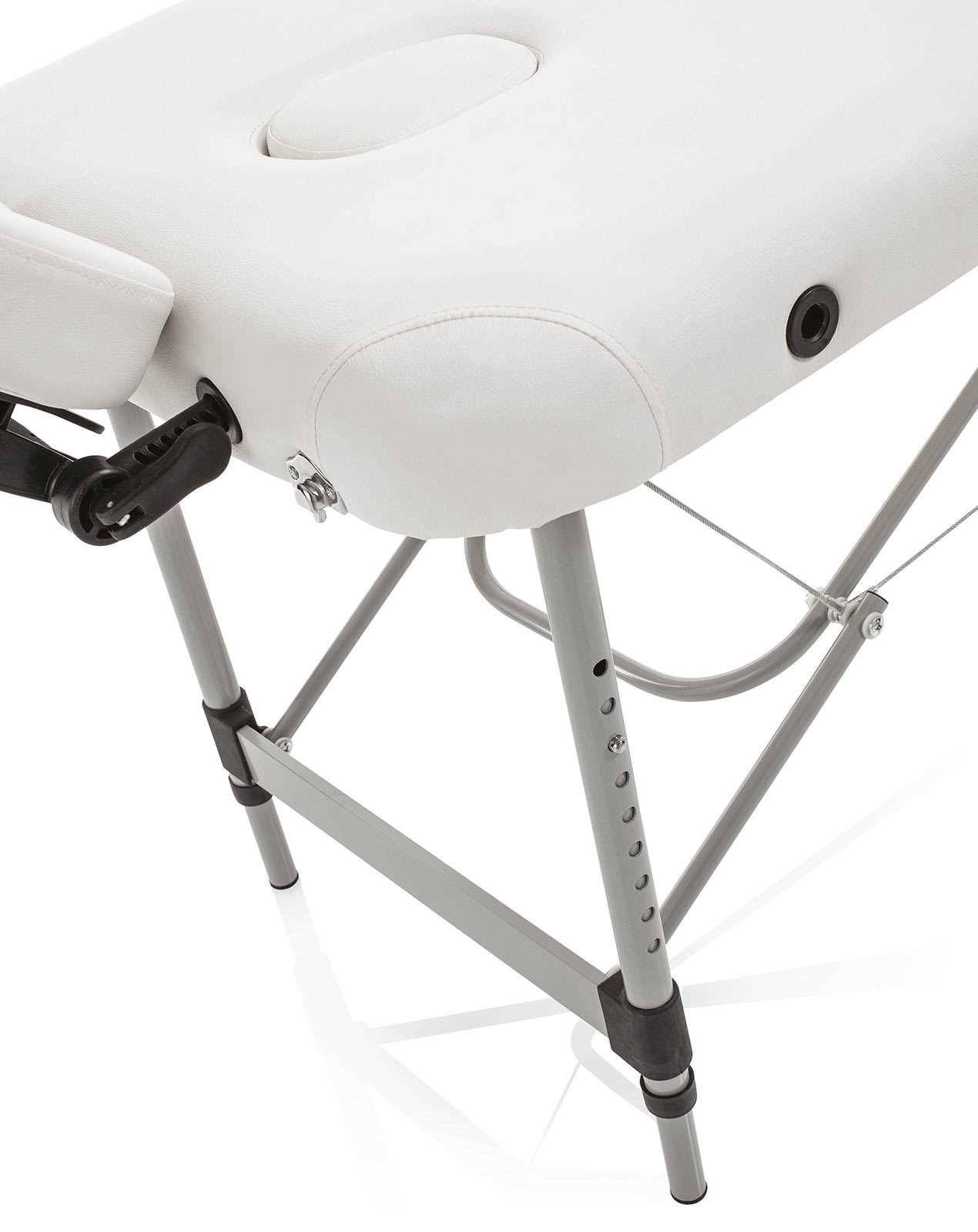 Mobile Klappbare stabile Alu Kosmetikliege mit weißen Bezug. Einsatz als Waxingliege / Massageliege / Therapieliege / Behandlungsliege
