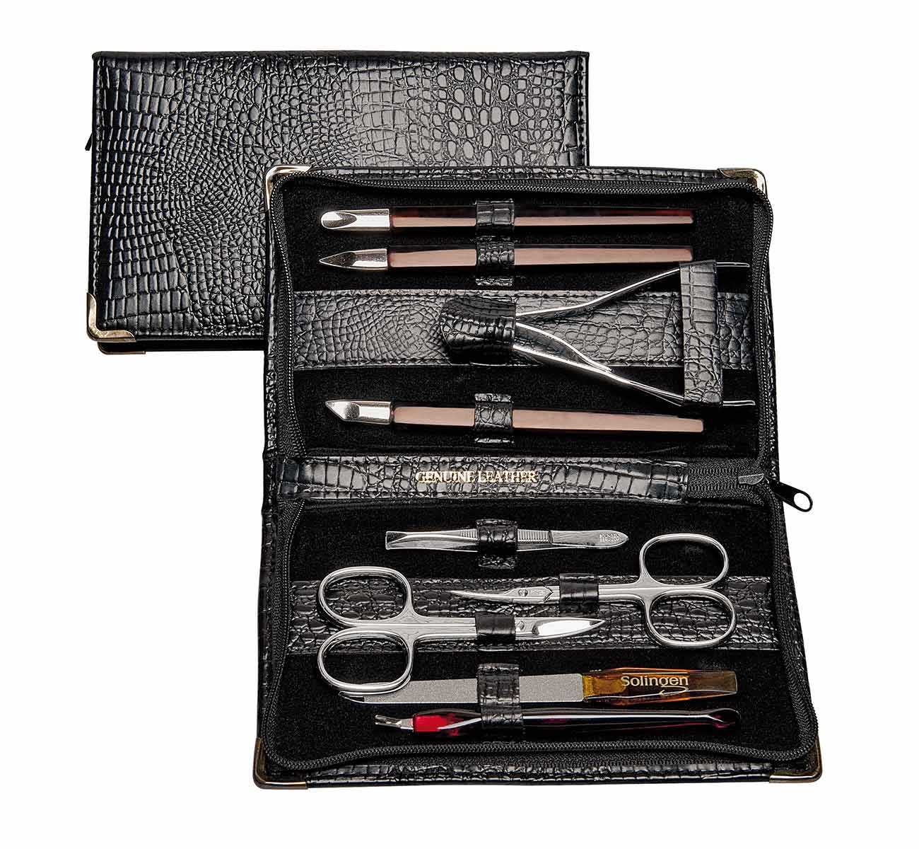 Maniküre-Set, 9 tlg., Kunstleder in Kroko-Optik Innen Rindsleder mit feinsten Solinger Instrumenten.
