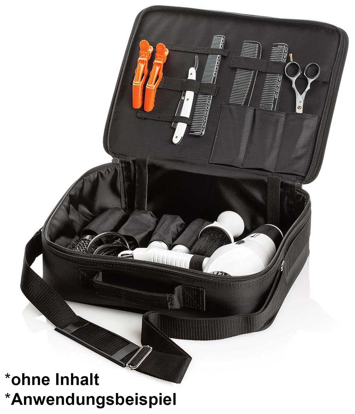 Weiterführende Links zu "Friseurtasche mit Innenfächern, Friseurwerkzeug Scherentasche mit Schultergurt, Tragegriff, schwarz"