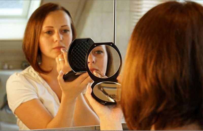 Ein klappbarer Taschenspiegel, ein Accessoire für die Handtasche.