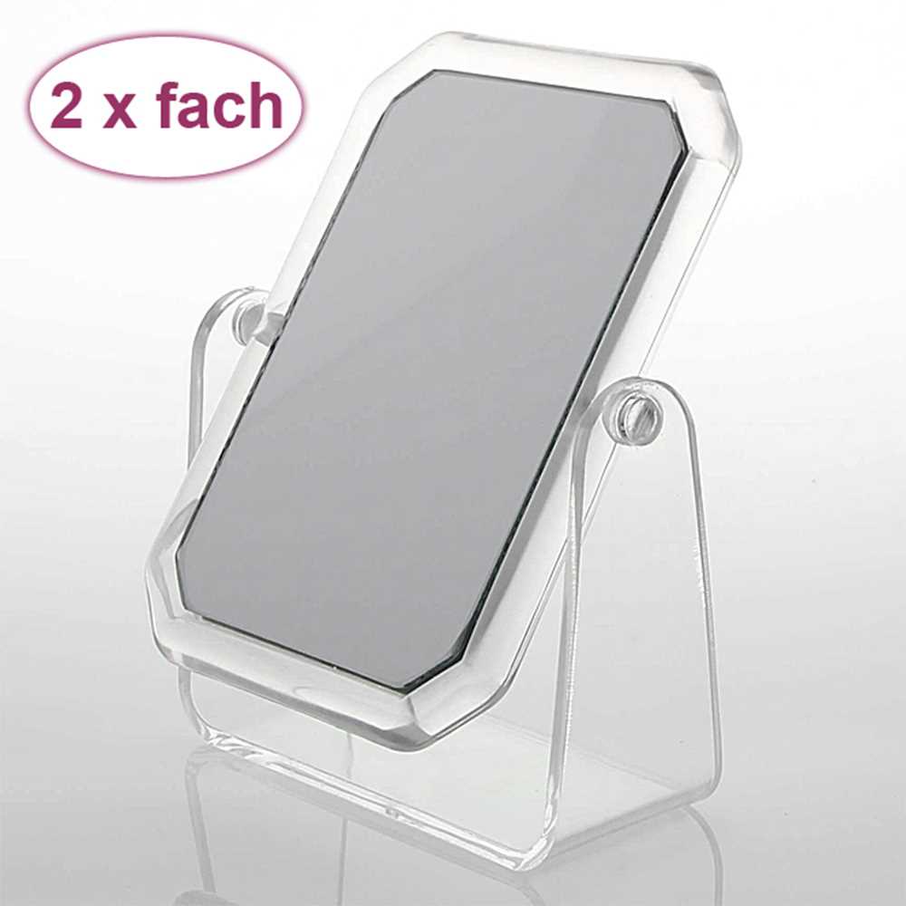 Acryl Standspiegel 19x 15 cm, Kosmetex mit 2-fach Vergrößerung, Spiegel, Kosmetik-Spiegel mit 2 Seit